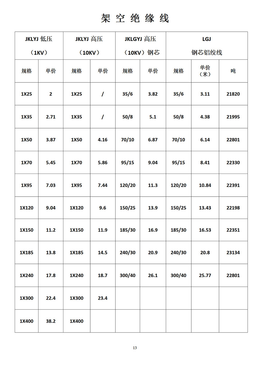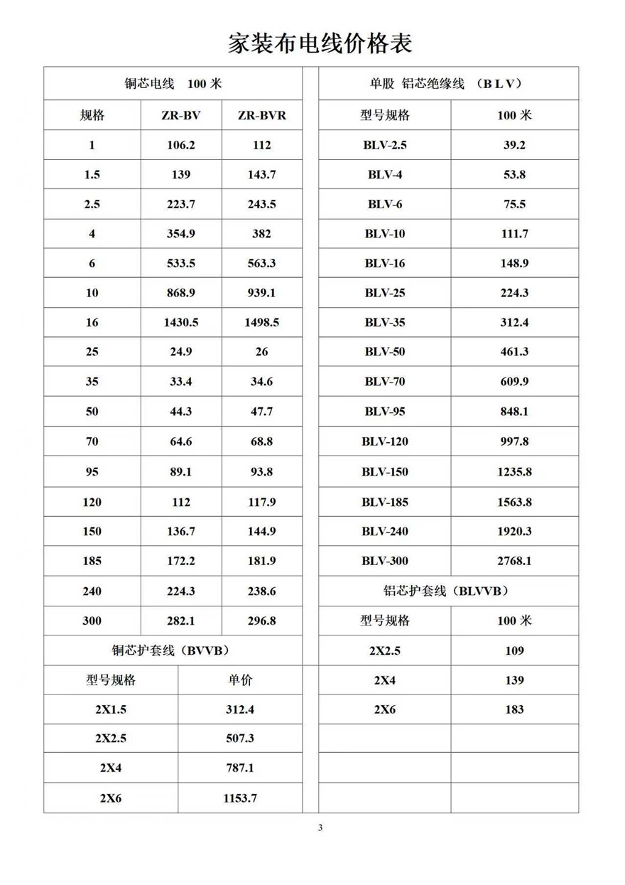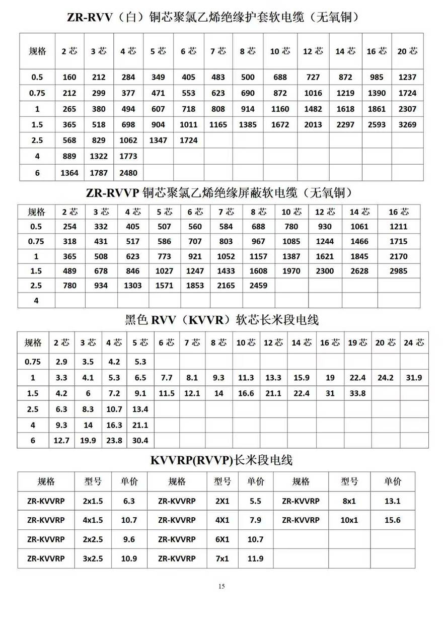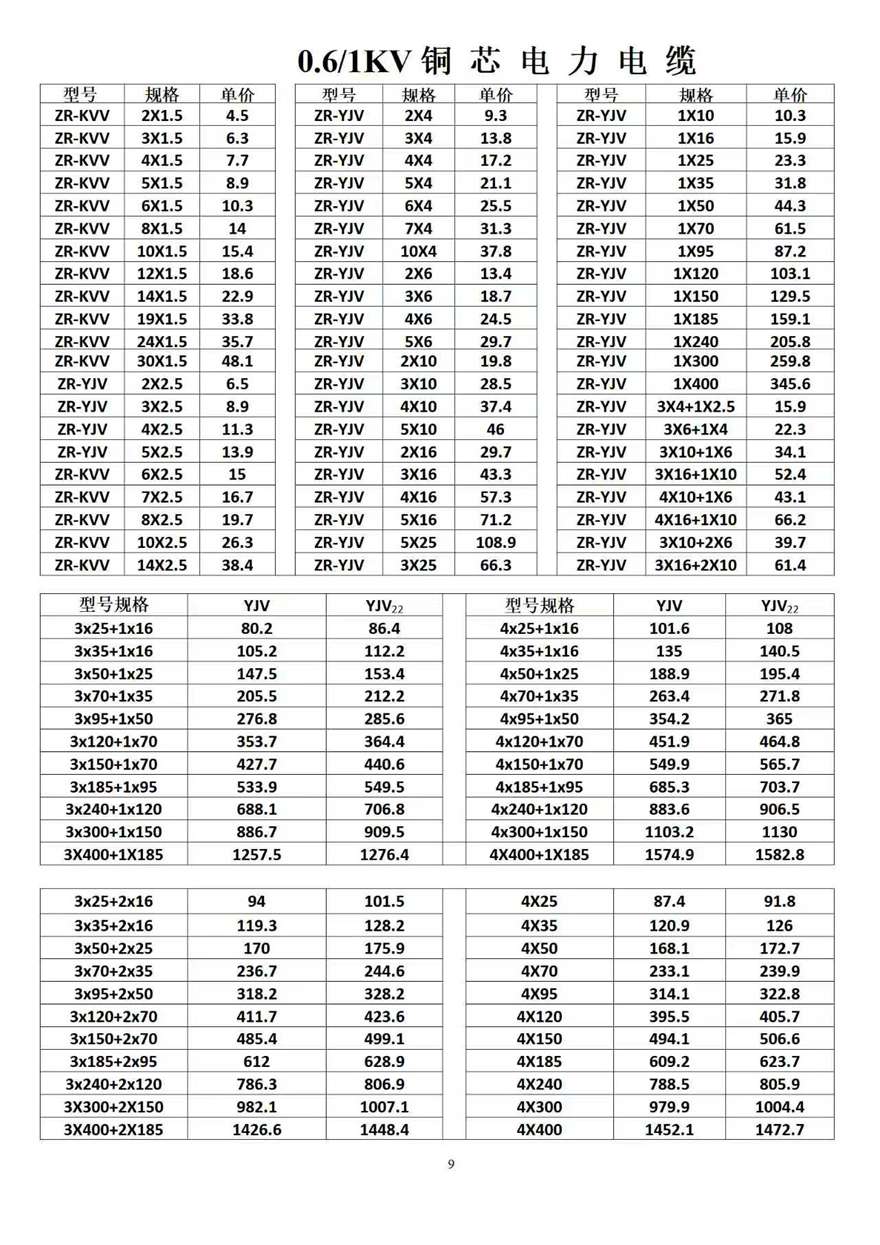 金峰電纜價格表